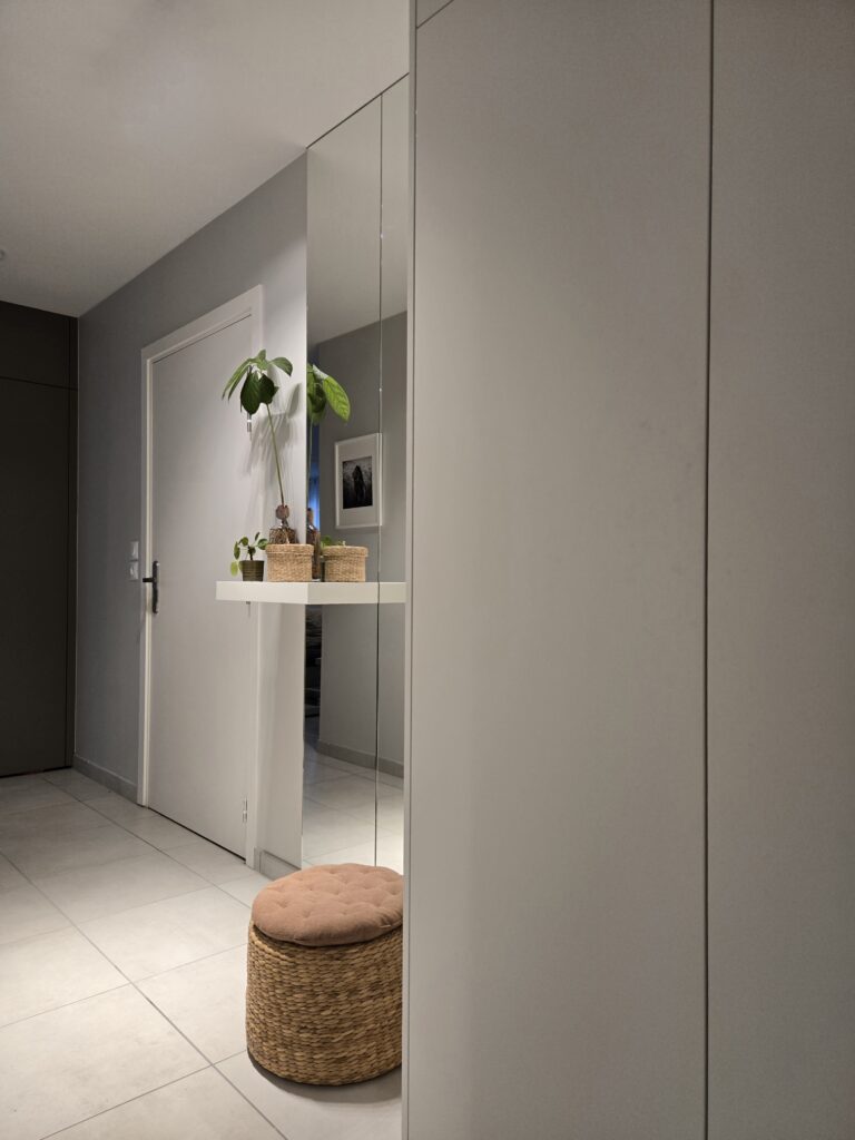 Chaque élément a été pensé pour optimiser les rangements et simplifier les usages : volumes dédiés aux besoins du quotidien, circulation fluide, matériaux choisis pour leur sobriété et leur capacité à capter la lumière. Les surfaces lisses, les teintes douces et la présence d’éléments naturels créent une ambiance apaisante, propice au bien-être.